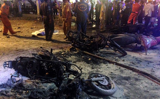 Thai correspondent channel ONE published a video from surveillance cameras, which recorded an explosion in downtown Bangkok. The video shows pedestrians walking along the street. Then, visible big orange flash when it is scattered, passers-by running in the opposite direction of its source.